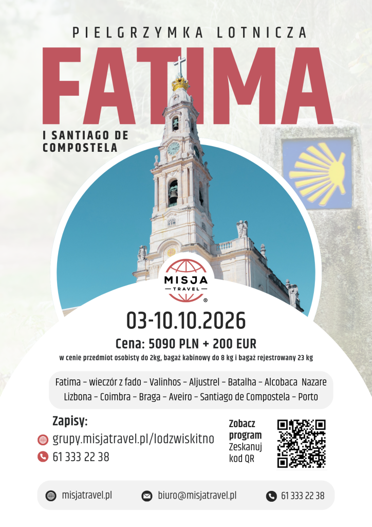 - Aby uczestniczyć w pielgrzymce do Fatimy, wystarczy dowód osobisty lub paszport.